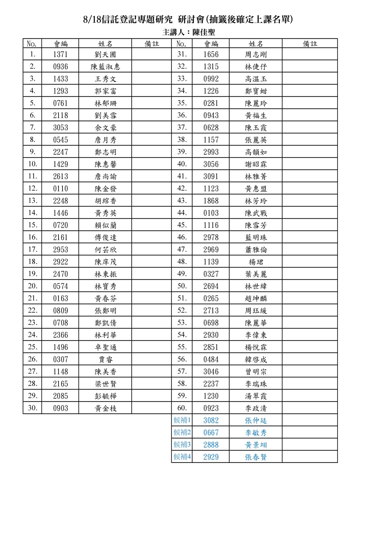 本會李理事長孟奎抽出8月18日座談會學員名單